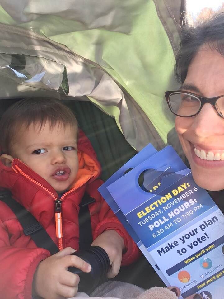 Jessica set a great example for her son by taking him canvassing with her: