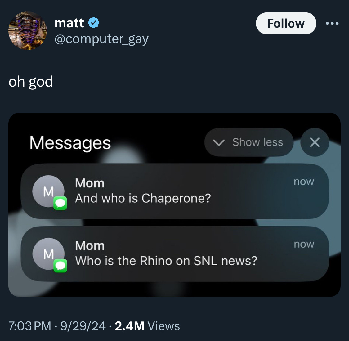 So that’s one aspect of this whole mess: Chappell Roan is used to being an artist whose fan base was small, sincere, and invested in understanding her. She is used to speaking to people who paid attention because they want to hear her. Unfortunately, she is now famous enough that new people are finding her every day, and— worse— famous enough that it’s become more profitable to police her expression than it is to comprehend it. To put it in terms of Search Engine Optimized Headlines, Chappell Roan has graduated from “our relatable queen” to “your problematic fave.”