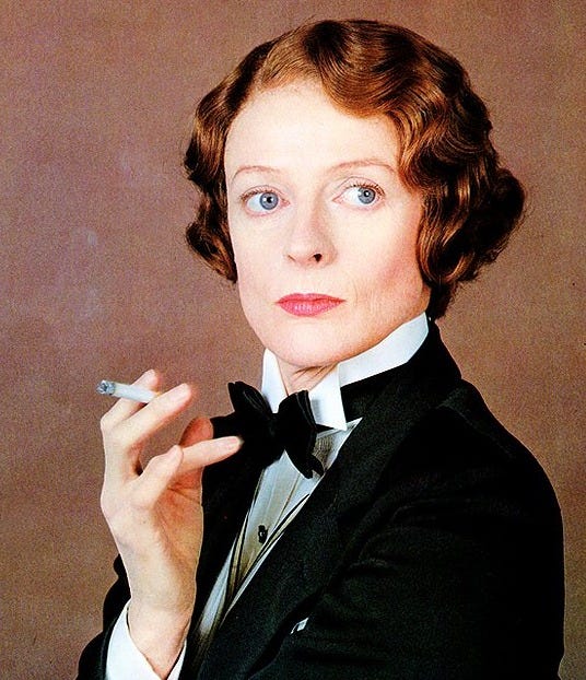 Dame Margaret here, back once again to opine on pop stars and political endorsements. While the temptation to write a tribute to the newly late, always great Maggie Smith was enormous, no lone Dame could do justice to that Grande Dame’s legacy. For now, let me just leave you with this delicious photo of her in costume as Miss Bowers from Death on the Nile (1978):