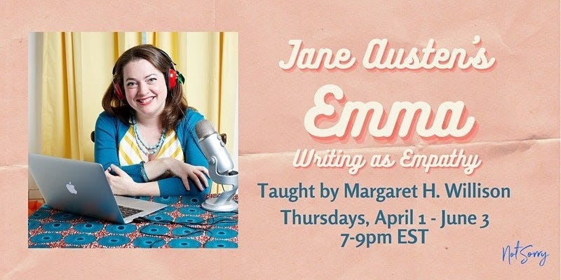 As we approach the one year mark for the COVID-19 pandemic, the effects of a small, restrictive life are weighing heavily on my mind and drawing me towards a close study of Jane Austen's Emma— Autumn de Wilde’s adaptation of which was, fittingly enough, the last movie I saw in theaters, 375 days ago. Thanks to the kind support of Not Sorry Productions, instead of rereading the book and excoriating myself over all the flaws Emma and I share all by myself, I can do it with a group of likeminded participants— maybe even YOU! Come and spend ten Thursdays with me reflecting on the ways life during a global pandemic is like life in a small English village when your hypochondriacal father artificially constricts your ability to travel. We will talk about the loss of perspective such seclusion creates by examining Emma herself and then work to grow our empathetic understanding of others by approaching the story from new fictional points of view. And, of course, we will be watching Clueless.